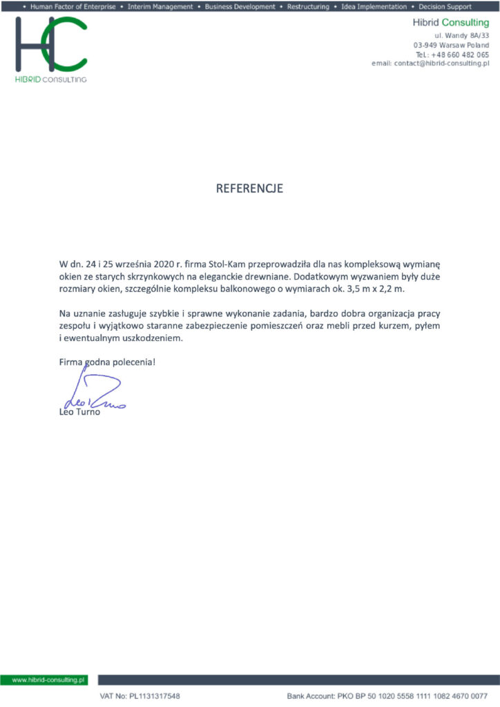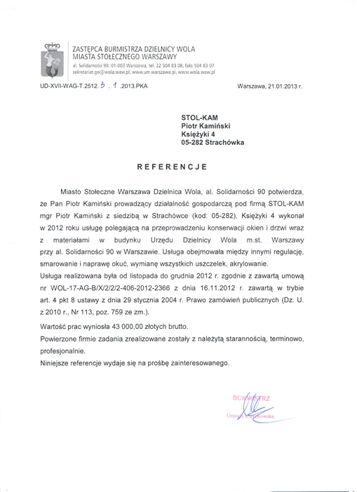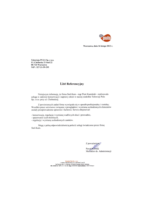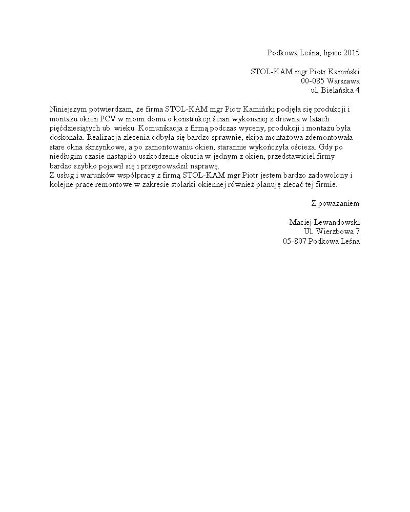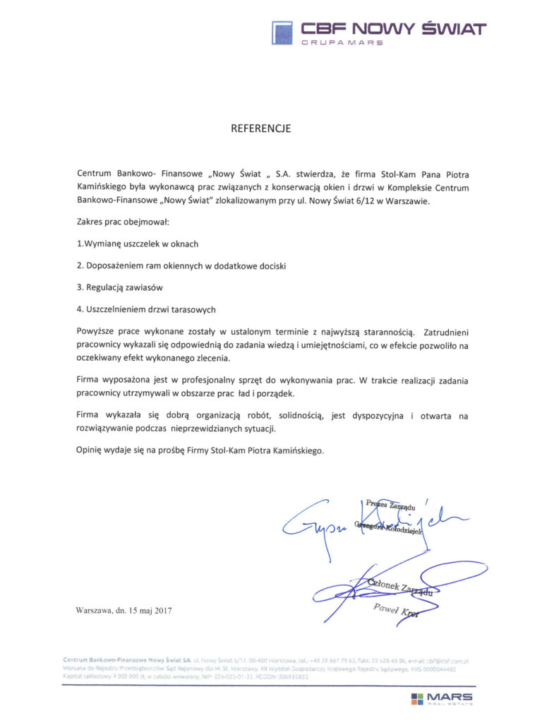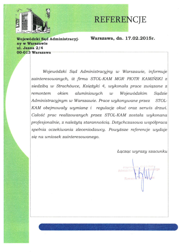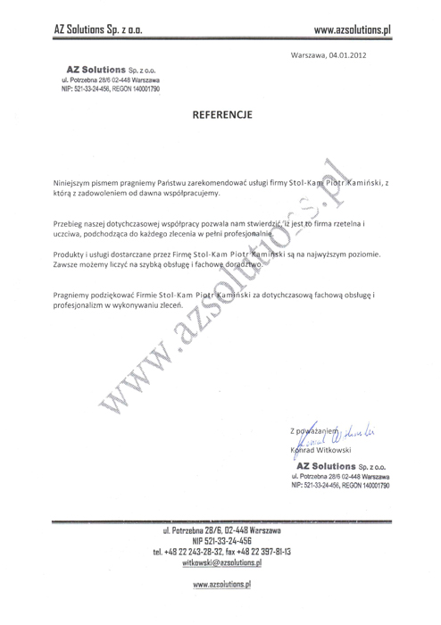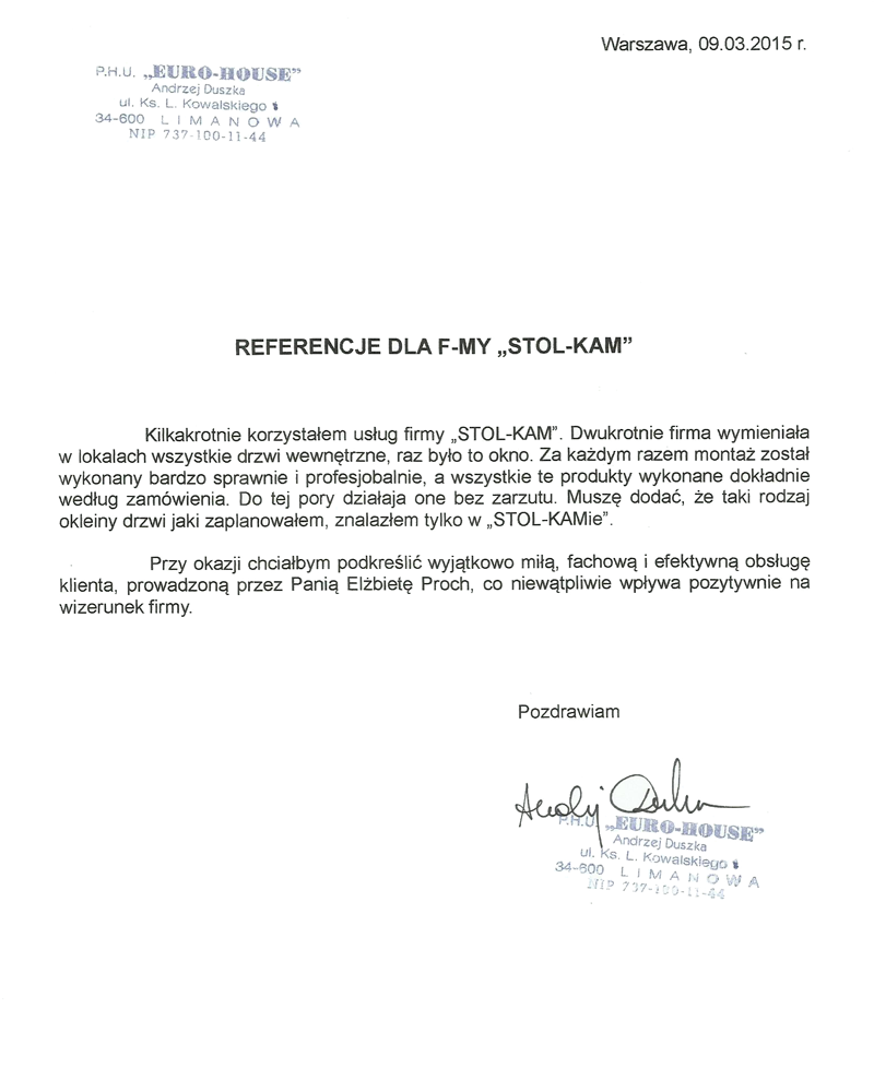 Zadowolenie klientów ze świadczonych przez nas usług potwierdzają liczne referencje, jakie od nich otrzymujemy.