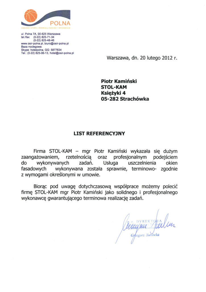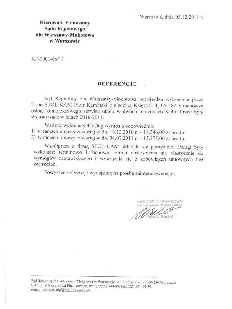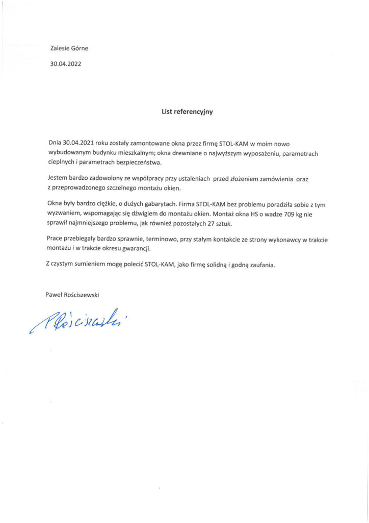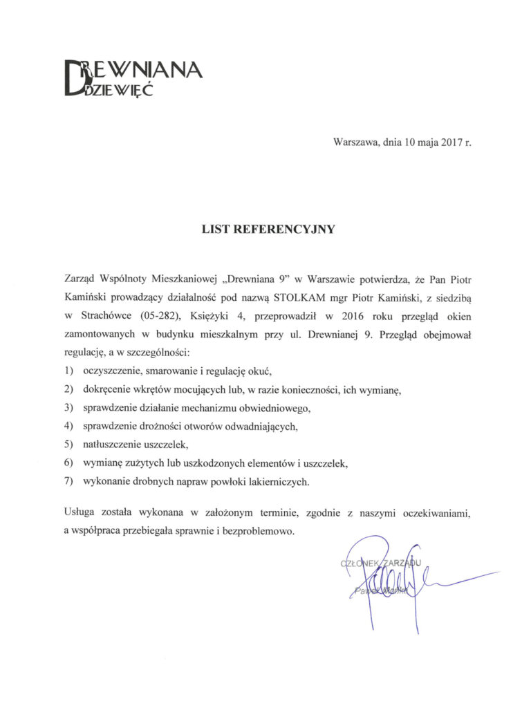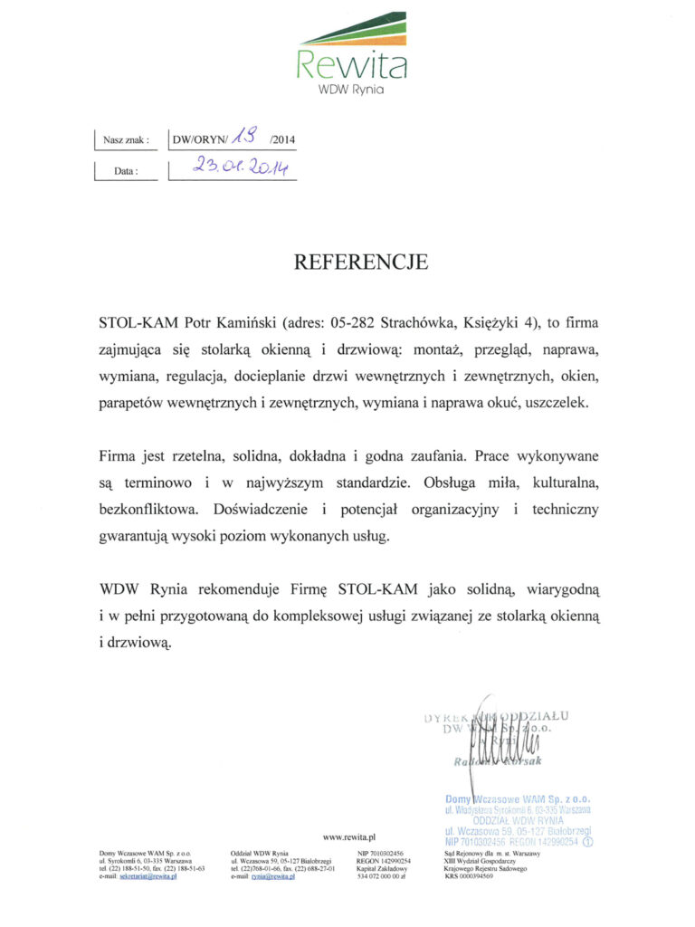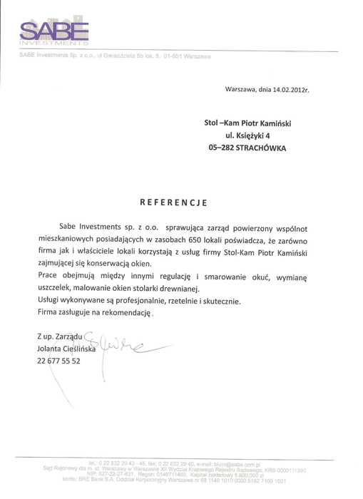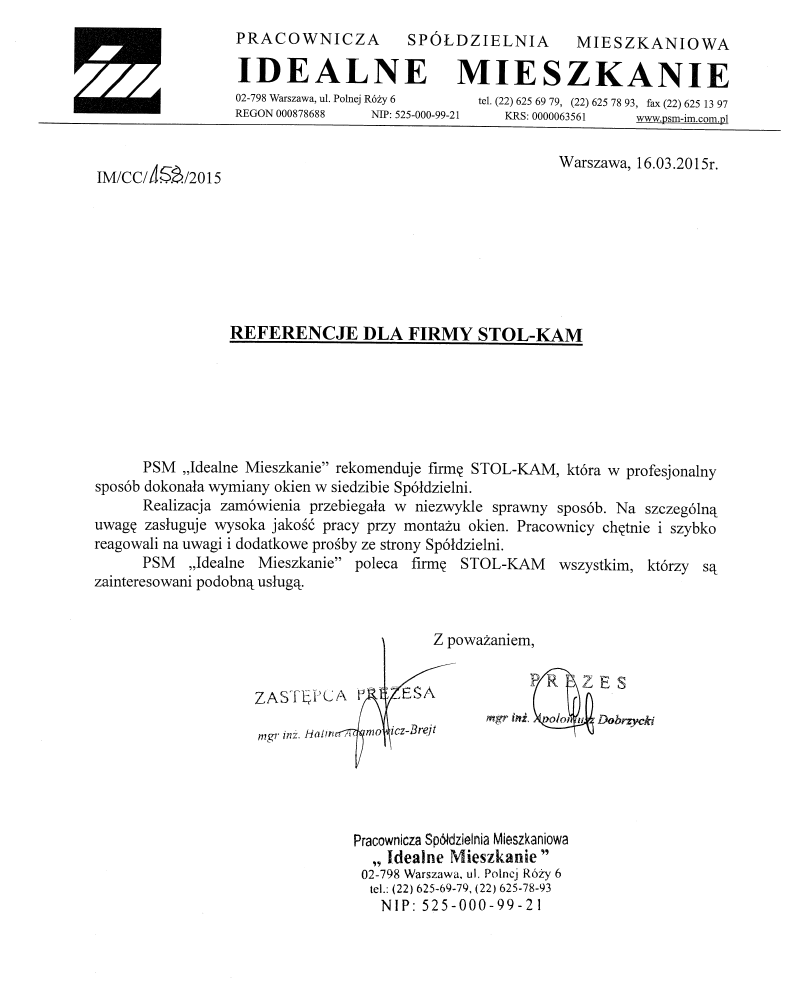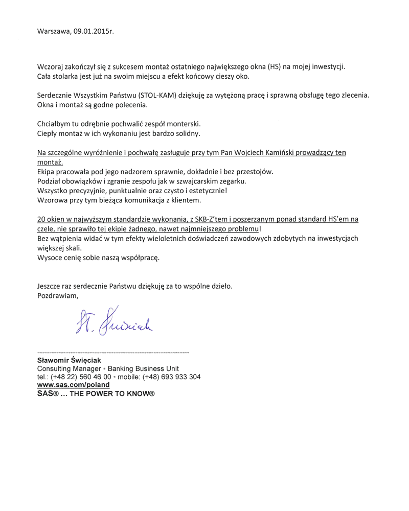 Zadowolenie klientów ze świadczonych przez nas usług potwierdzają liczne referencje, jakie od nich otrzymujemy.