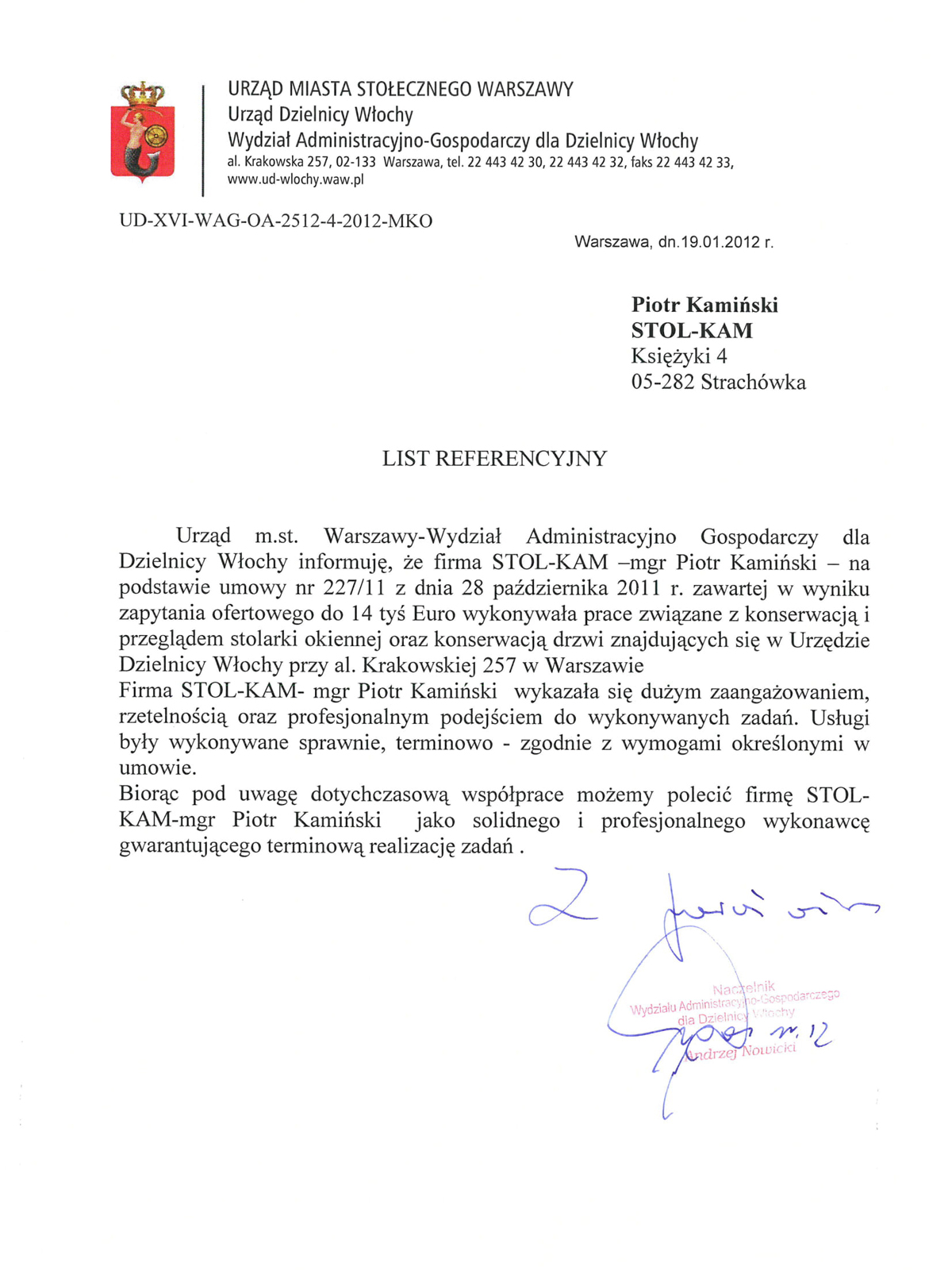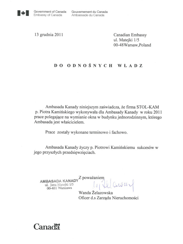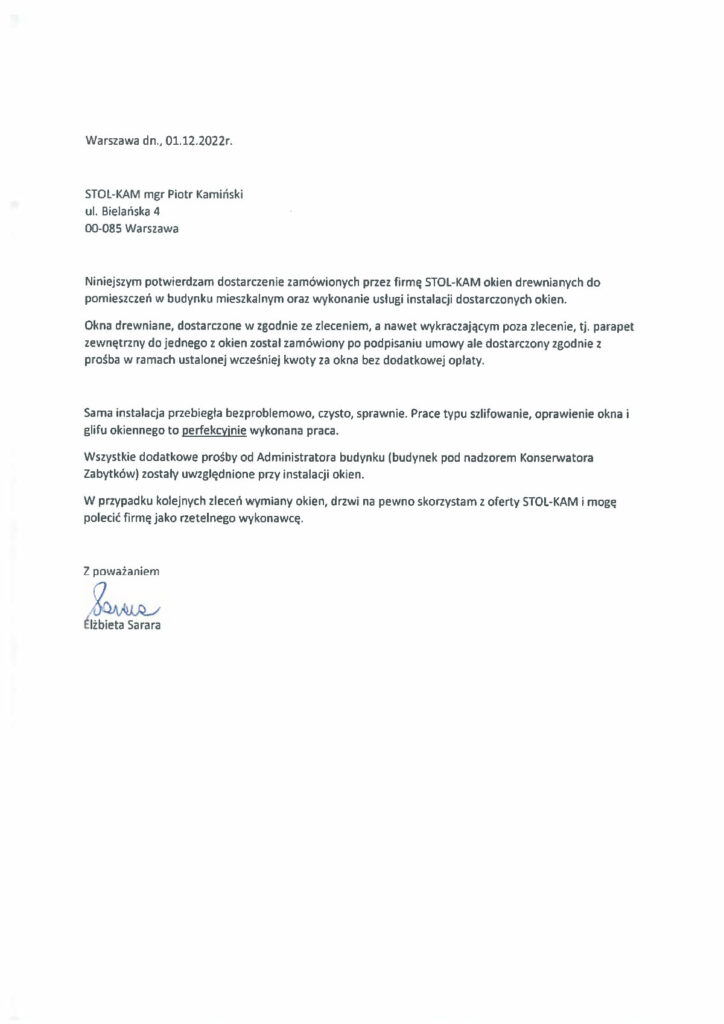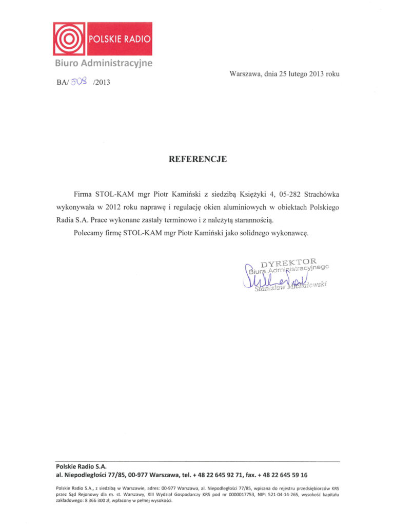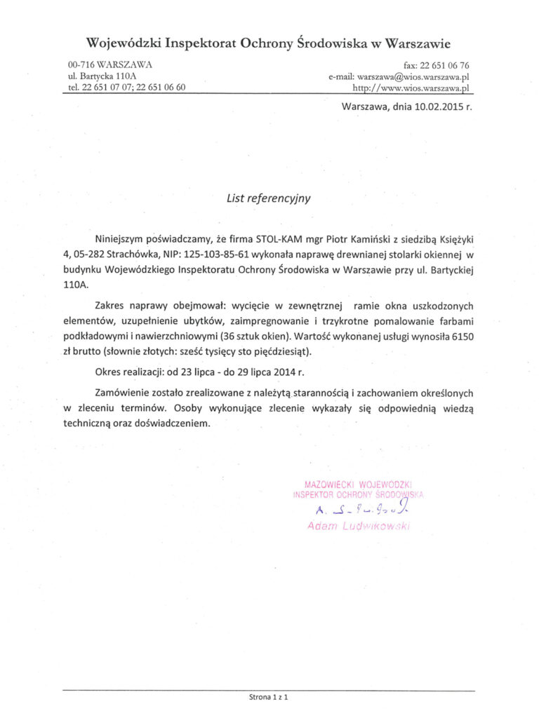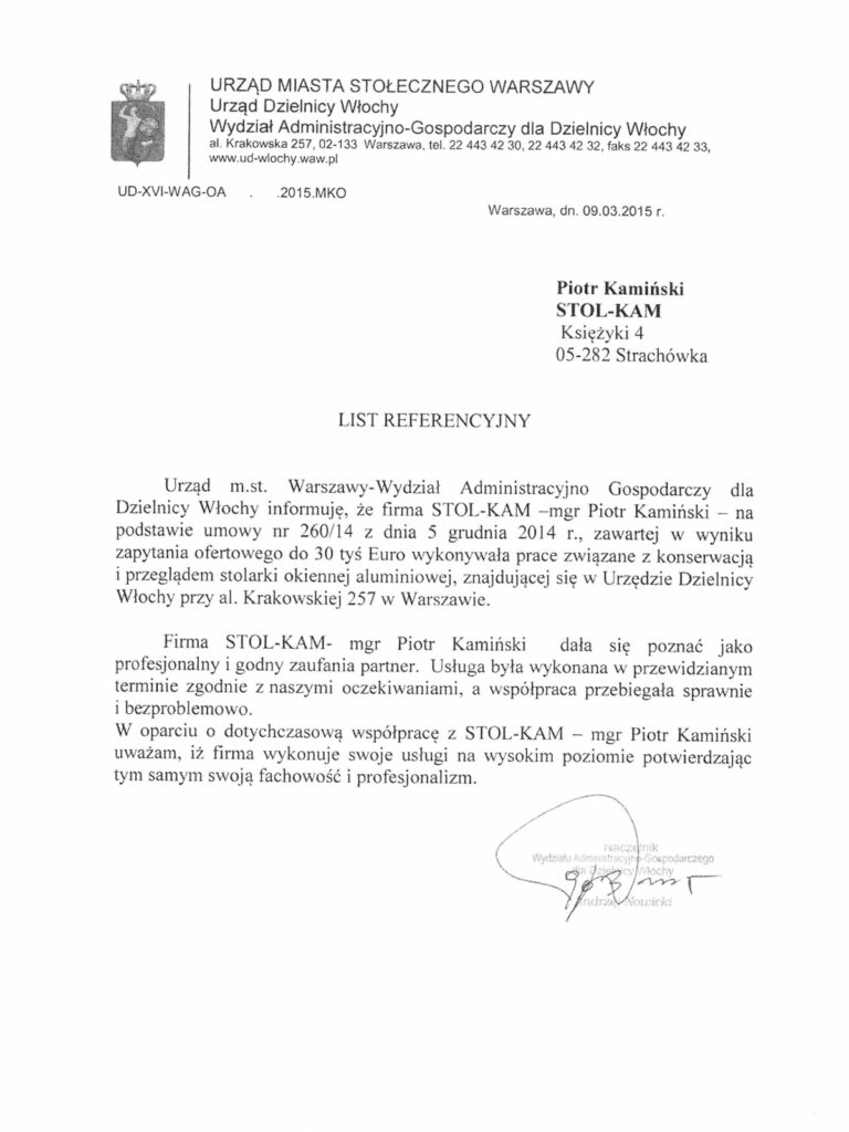 Zadowolenie klientów ze świadczonych przez nas usług potwierdzają liczne referencje, jakie od nich otrzymujemy.